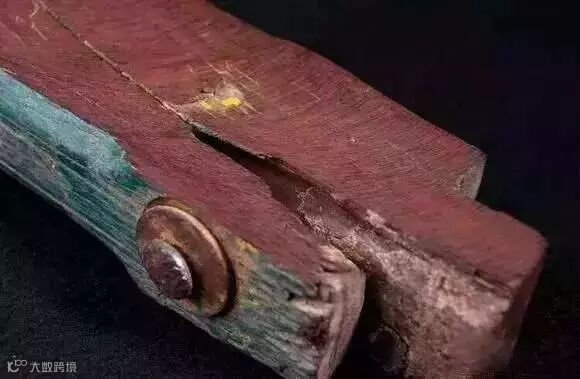 从马车料紫檀表皮来看某些油漆颜色还算清楚,有的表皮就腐的比较多一些,基本上都多少带有不同程度裂痕。再从截面看,个人以为表现出了一种"酸枝的颜色"。 请别误会,这里只是我个人的习惯才这样说,因为我接触到的一些拆房料做出的东西就有这样的特征,1颜色深(时间久的原因)红黑之间,比较柔对比度不够,不像那些清晰的火焰料自由分明,2 油脂偏少,粉末颗粒感强、自身水分干透(不考虑日晒雨淋)3 某些截面鸡翅纹明显。
