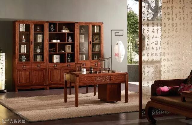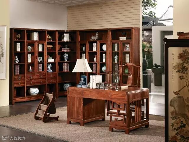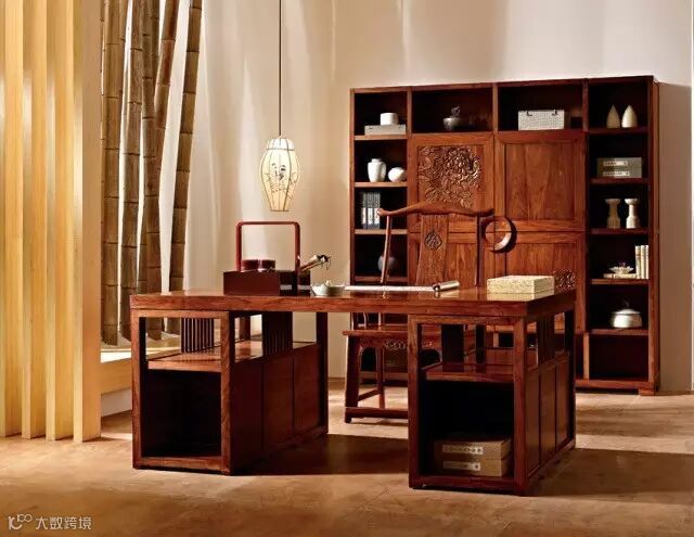这种风格的家具,讲究对称美学,比如书桌左边有某种花纹图案,右边相应的位置也要设计一个,凑成一对一双,以阴阳平衡的概念调和室内生态。