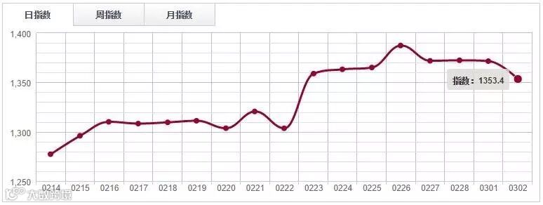 3月2日,中国木材指数(CTI)报收1175.93点,环比上涨0.14%。其中鱼珠木材指数(YTI)收于1094.04点,涨1.46%;福人木材指数(FTI)报收1250.85点,跌0.64%;大西南木材指数(DTI)报收1189.88点,跌0.6%。