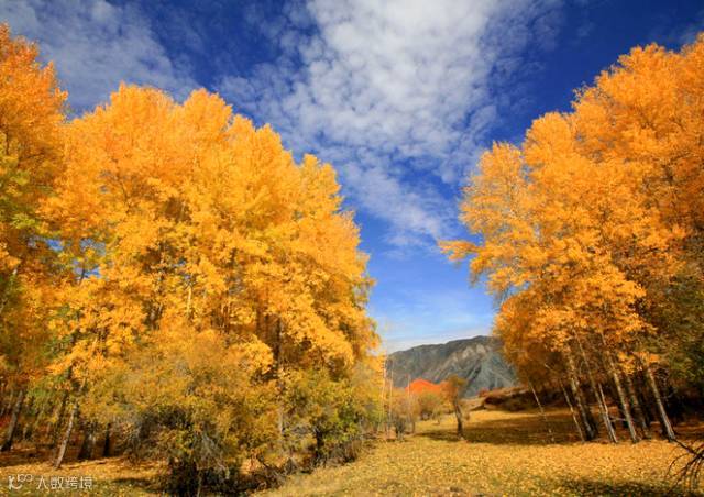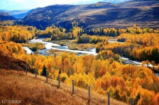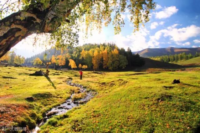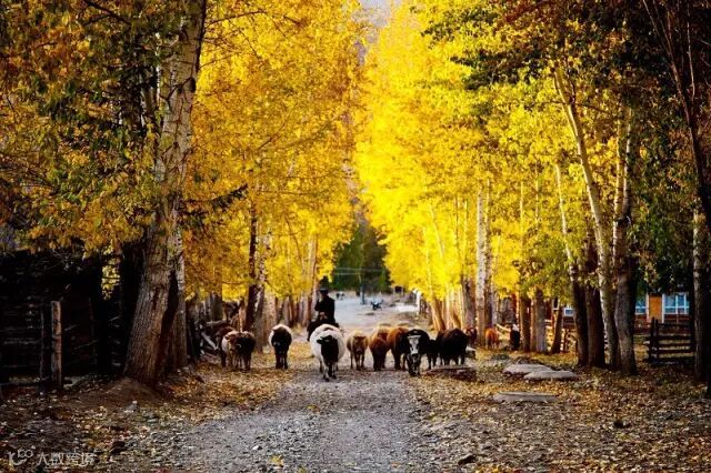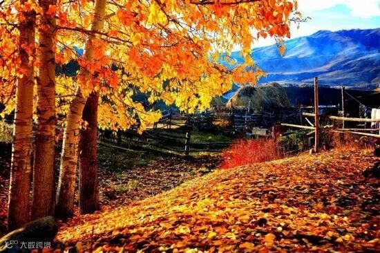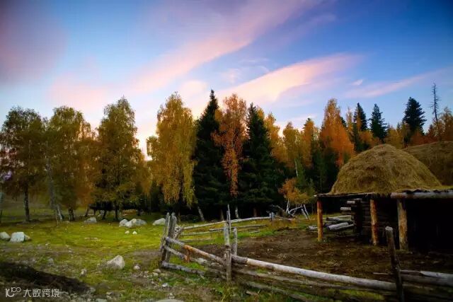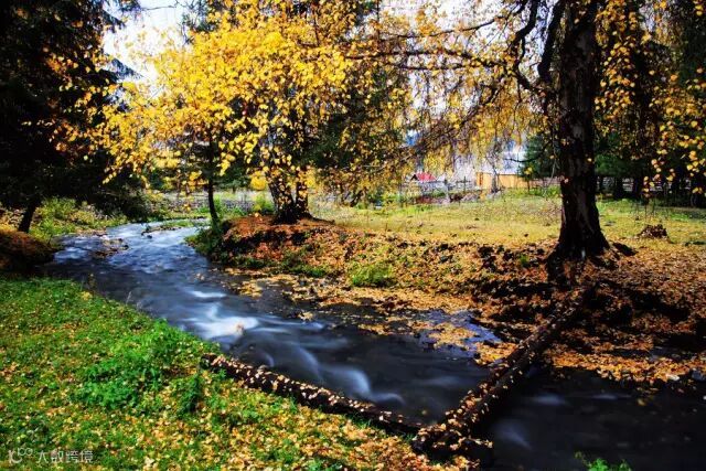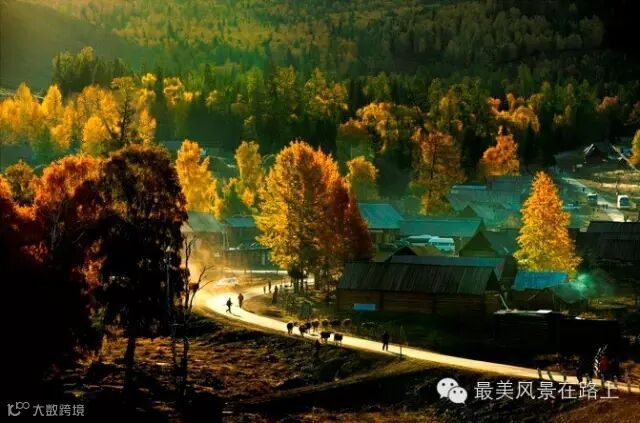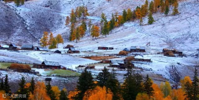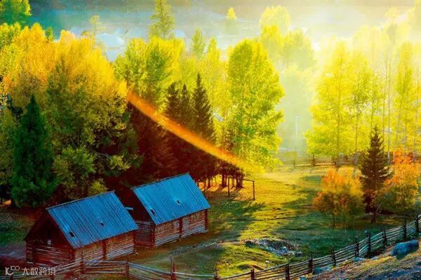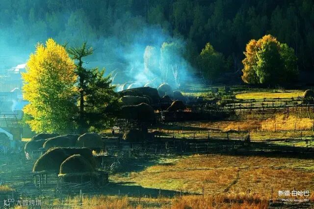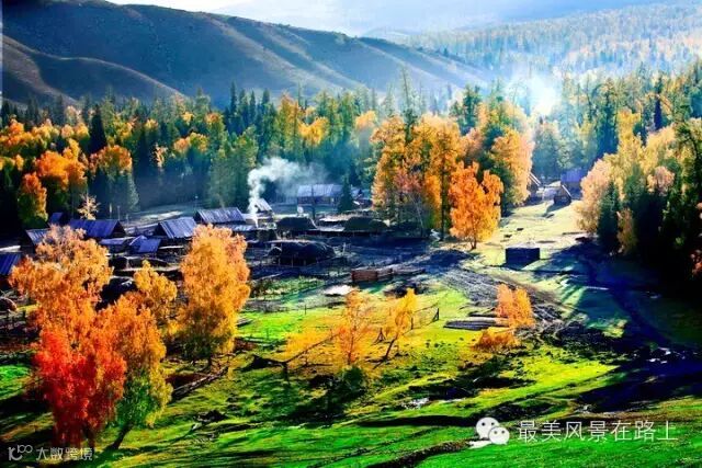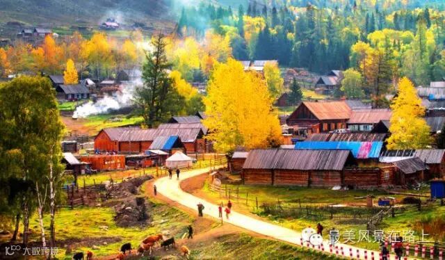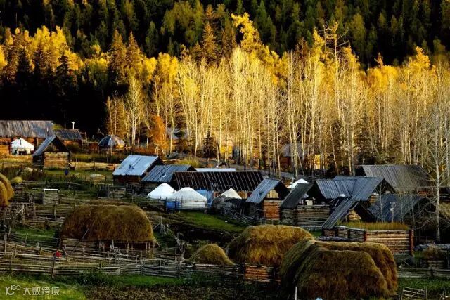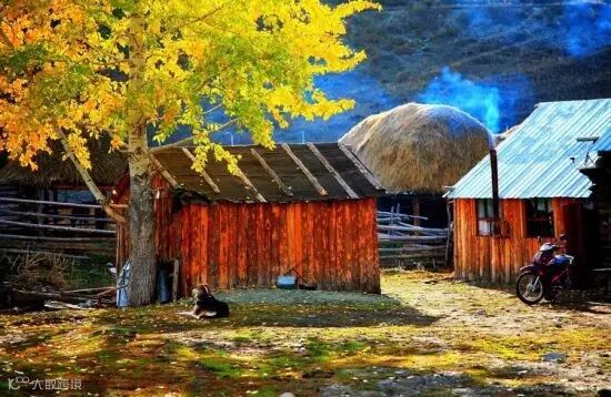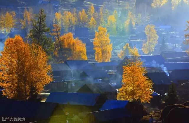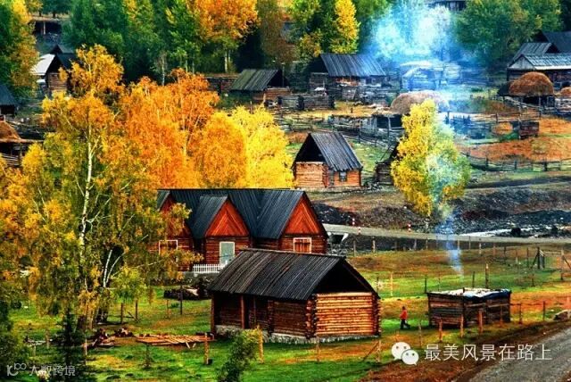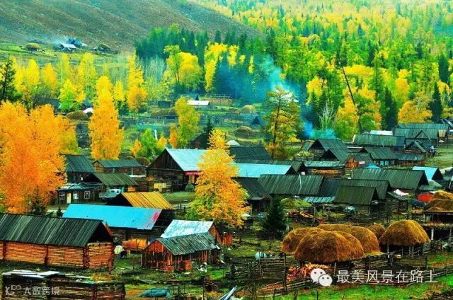 金秋的白哈巴更加充满了浪漫与传奇色彩,木头建造的房子错落有致,这个被世人誉为"上帝的调色板" 的原始大山区,金黄与火红肆意渲染着森林与原野,古老的图瓦人木屋,都在述说着一个个真实的童话,一不小心犹如进入美图画卷。