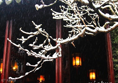 江南的雪,别有一番清雅如梅之容姿韵味,珍珠玉盘,烟笼寒翠,千秋远黛。相行而品,亦有一怀悠然独酌之人文情趣,一如江南人雨中漫步,风中缓行,雪中观景之闲散与惬意,安然与舒缓。“晚来天欲雪,能饮一杯无。”“有朋自远方来,不亦乐乎。”席地而坐,促膝而谈,一壶自酿老酒,一盘家常小菜,浅斟慢饮,融融而乐,那是江南人热情邀客之爽朗情味,怡然自得之生活情调。