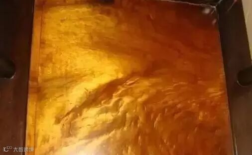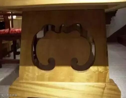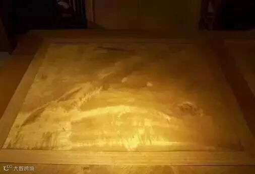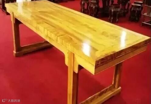 上图是卖家声称精选桢楠特殊部位材料制作的画案。由于制作过程中明显进行了人为上色处理,已经丧失了楠木原有的材色,特殊的木纹也不够明显(怀疑是人为描绘),其表面的反光效果已经失去了参考价值,直让人怀疑是否造假?