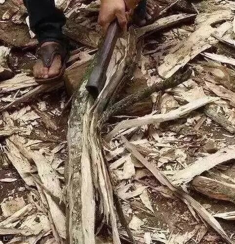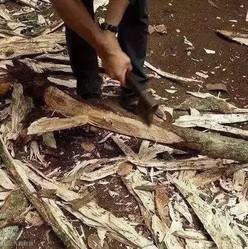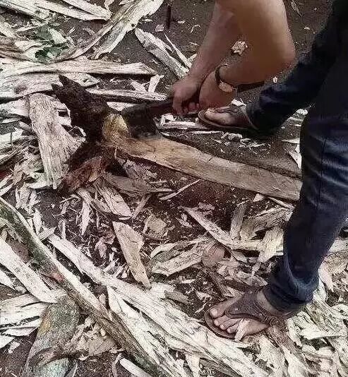 再来一刀?还是只见树皮,难道这棵料没有芯材?长不出来了吗,我就不信了!