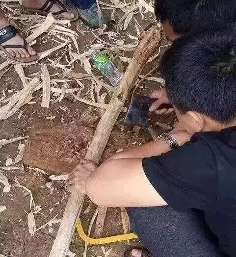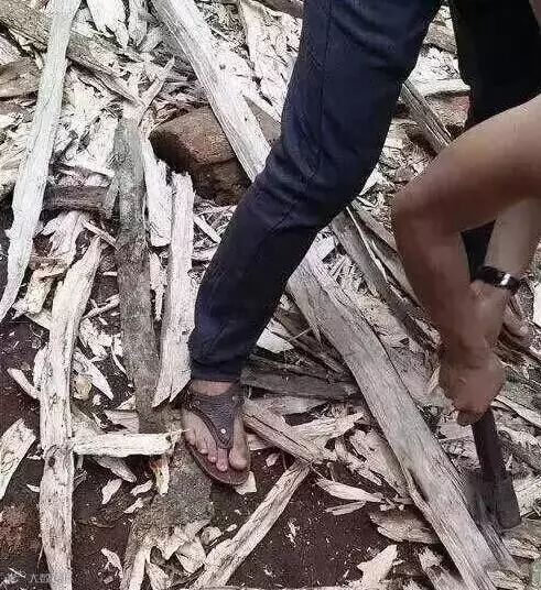 一到家就迫不及待的拿起斧头开始劈了,一刀下来傻了,怎么看不到树心?
