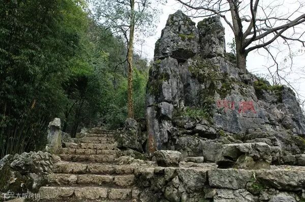 石头上的红字是“中洞”,