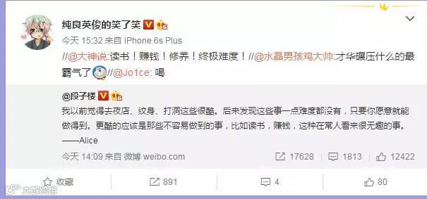 随着年纪的增长,觉得那时的自己好幼稚,反而更崇拜那些很有才华的人,他们真心一直在坚持做一些常人不能坚持的事,很厉害!微博上有网友提出才华碾压才是硬道理的说法,大家纷纷赞成。