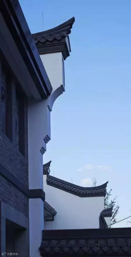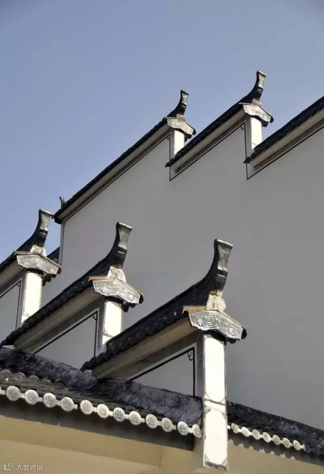 墙线错落有致,黑墙白瓦,色泽典雅大方。