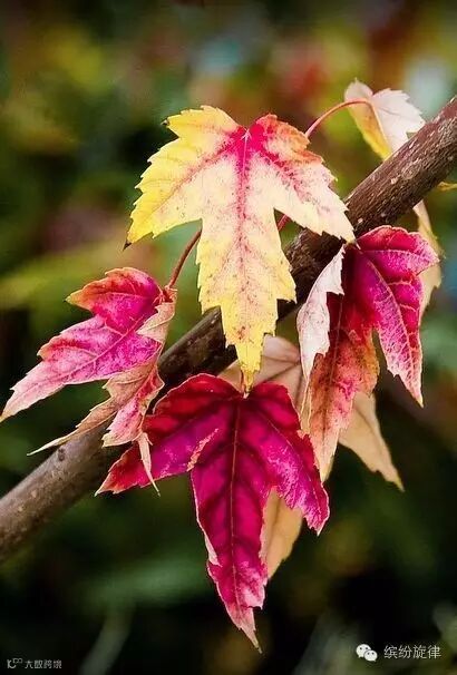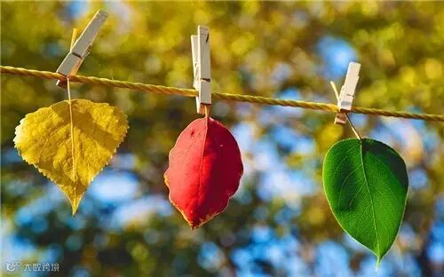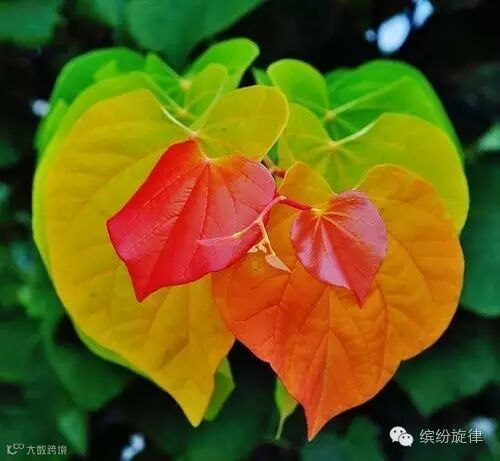 绿叶、黄叶、红叶,