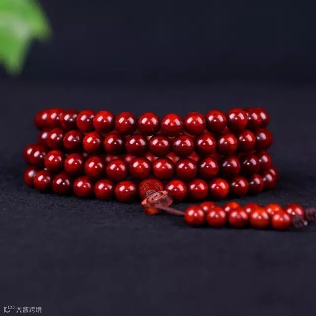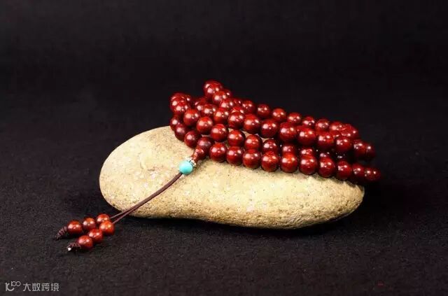 ▲鸡血料108颗念珠,带有黑斑部分甚少