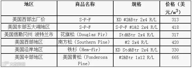 鱼珠中国木材价格指数相比于1月份新历年伊始,美国当地部分锯材价格在2月份中旬有一定的下调。以下是美国2月份中旬锯材价格。
