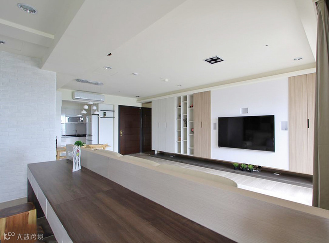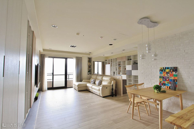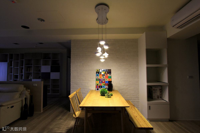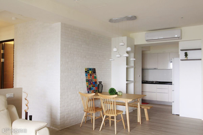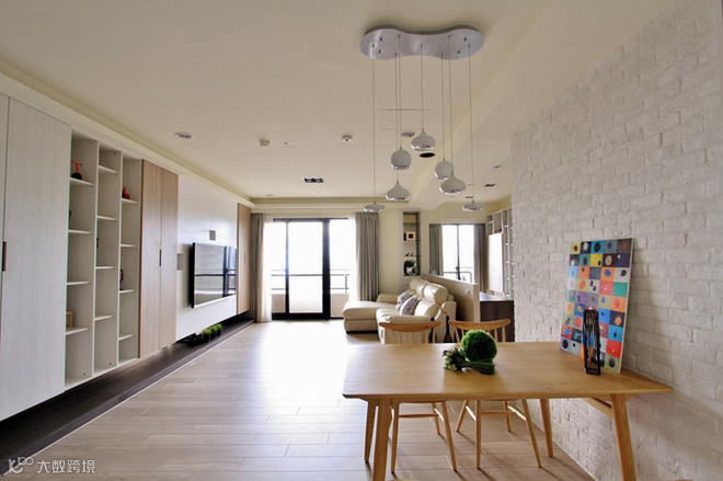 呼应著这份自在,设计师林嘉庆将原本的四房格局破除,换以三房私密与开放式书房為界,搭配加大处理后的客厅场域,开阔视感形塑内在从容;而材质选用上,亦刻意降低彩度干扰,净白烤漆对应上白色系文化石的粗獷,原木餐桌搭上简单化地西班牙灯饰,最后,大面积处理柜体俐落悬空,轻量后地整体性满足收纳所需,北欧设计回归了实用派的生活场景。