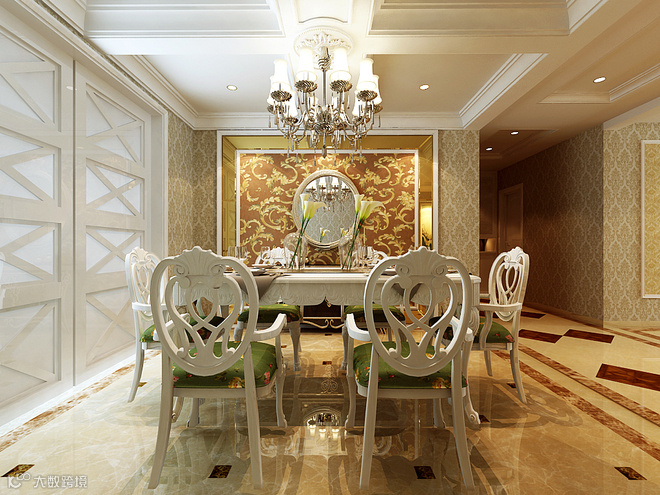 此案例为东胜紫御府179平米欧式风格装修效果图。“低调的奢华,奢华而含蓄”,使看似矛盾的两方面体现在一整套设计中,使一个经典的风格与时尚和流行文化共存,保持了风格上的沉稳与高贵的品质。此设计继承了传统欧式风格的装饰特点,吸取了其风格的“形神”特征,在设计上追求空间的连续性和形体变化的层次感,温馨的灯饰,精美的窗帘、多姿的曲线家具搭配,使欧式的深沉里显露着尊贵,典雅中浸透着华丽,将现代生活的休闲与舒适表露出来。