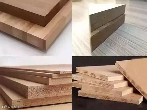 低密度纤维板、中密度纤维板、高密度纤维板、刨花板、实木颗粒板、三聚氰胺板等。