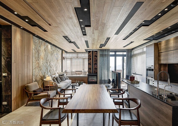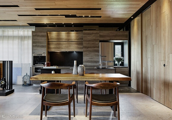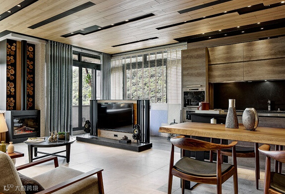既要与在地生态完美链结,必先破除过多的实体墙线阻隔,因此,透视性的公领域中,餐桌与低高度的电视主墙设定,流畅出了双口字型的迴动,步步释放著空间生命力与有机价值。