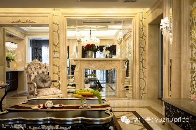 本案在设计风格采用了极致奢华的设计手法,大量的亮面装饰和精巧的摆设增加了奢华感,垭口处欧式雕花设计不仅迎合了欧式风格,也让空间看起来非常的威严庄重,大量的石材运用也紧扣设计主题。纯洁的白色是家装经典,加上奢华的金色,打造出这样一个华丽高贵的生活空间。为了保证这种奢华效果,设计的布置和用材经过严格的筛选,特意选用高质量的家装材料,让整个空间更显质感。从颜色搭配到软装设计,整个室内的布置就如一场洪势工程,是细节的用心,打造出外设的华丽。
