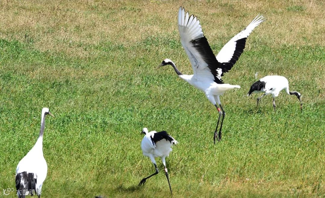 丹顶鹤展开双翅欢腾跳跃