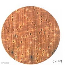 宏观构造:散孔材。管孔放大镜下明显,略少,略小;主为径列复管孔(2-4个,多2-3个),少数单管孔;具沉积物。