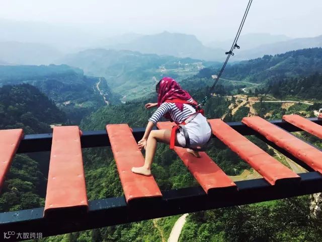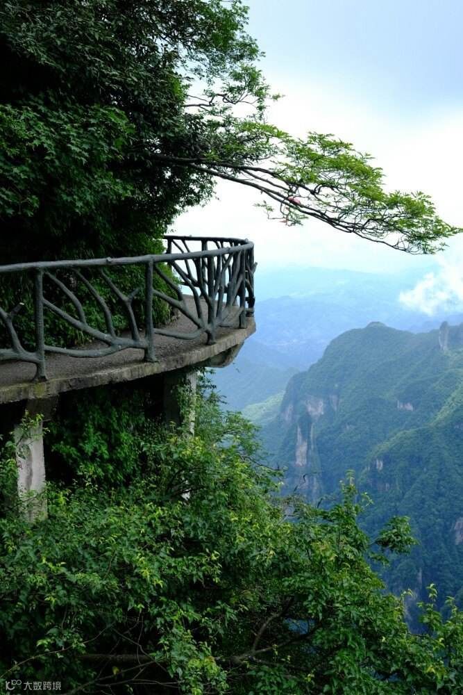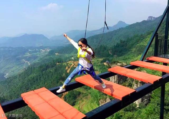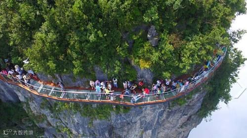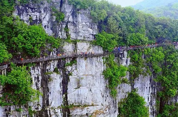 “天门山鬼谷栈道”,位于张家界天门山国家森林公园的一处景点。栈道全线既不在悬崖之巅,也不在悬崖之侧,而是全线都立于万丈悬崖的中间,给人以与悬崖共起伏同屈伸的感觉。栈道长60米,最高处海拔1430米。挑战一下?