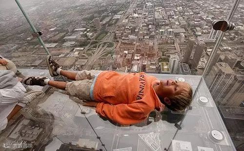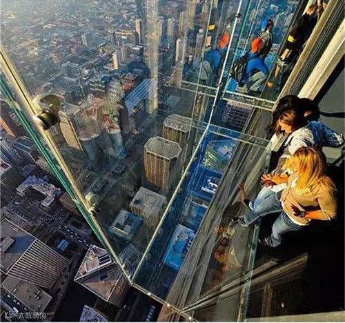“芝加哥观光层”是芝加哥西尔斯大厦的运营者突发奇想建造的,他在芝加哥西尔斯大厦的103层处设置了4个玻璃为底的盒子结构,名叫“Ledge”(悬崖边的突出物),从瞭望台向外延伸约1.2米。在盒子里可以俯瞰芝加哥大部分市貌,而且敢进入里面的这些“装在盒子里的人”应该也是最勇敢的人。