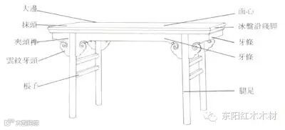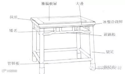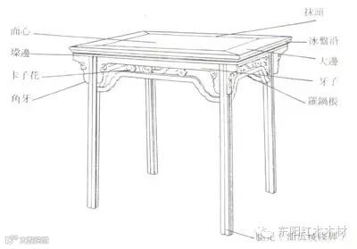 1. 一腿三牙罗锅枨加卡子花方桌各部位名称