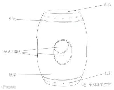 坐墩也叫“绣墩”,由于它上面多覆盖一方丝绣座垫而得名。坐墩的开光来自于古代藤墩用藤条盘圈成形的壤壁。弦纹及上下周边的钮扣状装饰象征绷在鼓面皮革边和帽钉。其它变体形式非常之多。