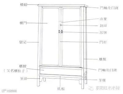圆角柜的柜顶有三面喷出,称为“柜帽”,柜帽转角处多被削成圆角;另一个特点就是它的门扇不靠合页开启,而是利用设在门上的门轴开关;这种柜式造型挺拔,侧脚显著。