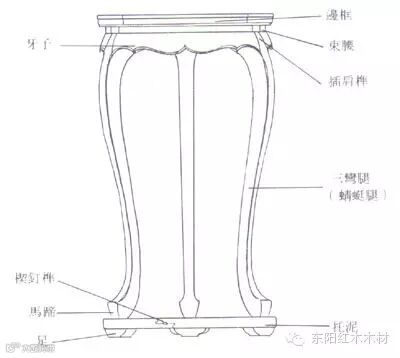 3.无束腰罗锅枨加矮老管脚枨方凳各部位名称