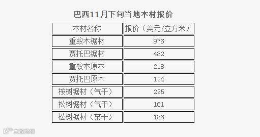 三、巴西11月下旬当地木材报价