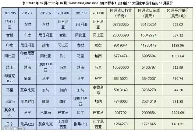 导读:2017年10月,中国进口红木原木144,687,655千克,总计91294129美元。