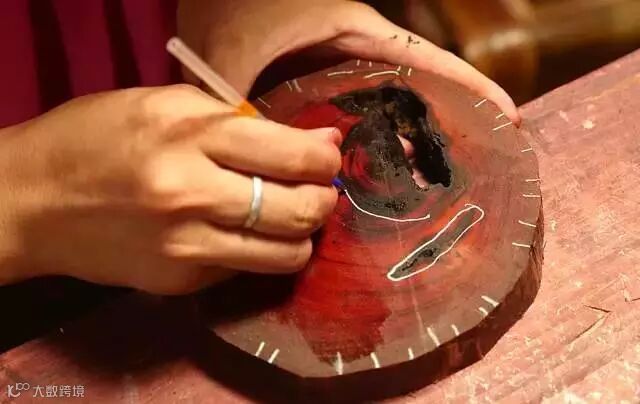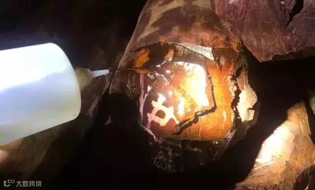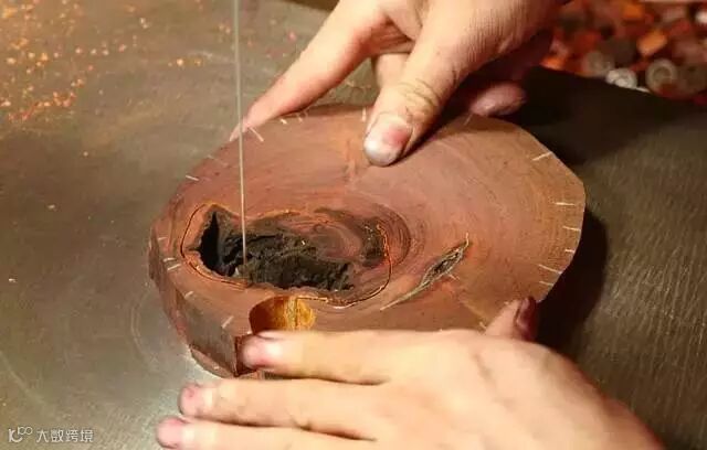 在平整的横截面上喷上稀释过的胶水之后可以更清楚地看到金星或者其他特征。虽然喷上胶水后更容易看,但是走眼的几率还是比较大。这就是大家所说的赌木。