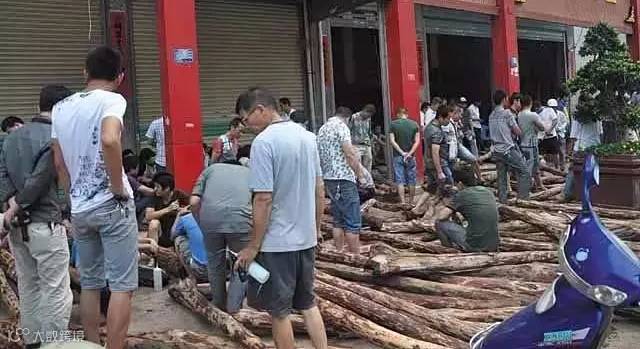 首先是选料,木材市场每次到货之后马上引起哄抢。大家都拿着手电和稀释的胶水到现场挑选原木。
