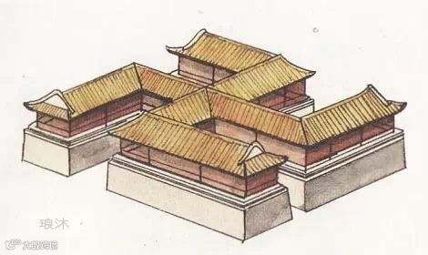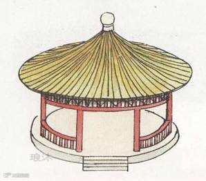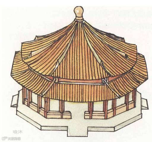 无正脊,只有垂脊,只应用于面积不大的楼、阁、楼、塔等,平面多为正多边形及圆形,顶部有宝顶。