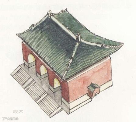 单檐庑殿顶多用于礼仪盛典及宗教建筑的偏殿或门堂等处,以示庄严肃穆,如北京天坛中的祈年门、皇乾殿及斋宫、华严寺大熊宝殿等。