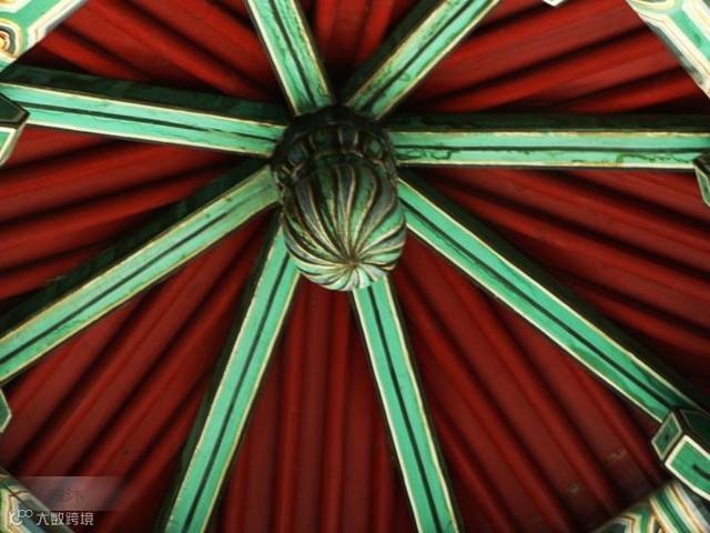 北京中山公园兰亭八柱亭,攒尖顶的内部