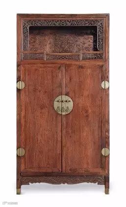 亮格柜的侧面各有六个出头的榫子,是为了便于拆卸而故意留的,这在柜子中实属罕见。其雕饰精美绝伦,图案的设计与刀工都达到很高的水平。亮格柜在亮格上的迎面栏杆中间开敞,仿佛是一座小舞台,美观而便于陈列,十分稀有。从亮格柜的构造和雕饰来看,它是明代后期传统家具发展到十分成熟时期的制品。