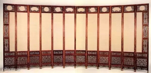 上为绦环板,开正圆、摺扇、秋叶等各式开光。中部为隔心,可嵌装书画屏条。前代献寿贺庆,往往一面作吉祥图画,一面书写寿文。下部分三段:上为绦环板,透雕走兽及螭纹;中为裙板,下为亮脚,雕饰下垂云头。