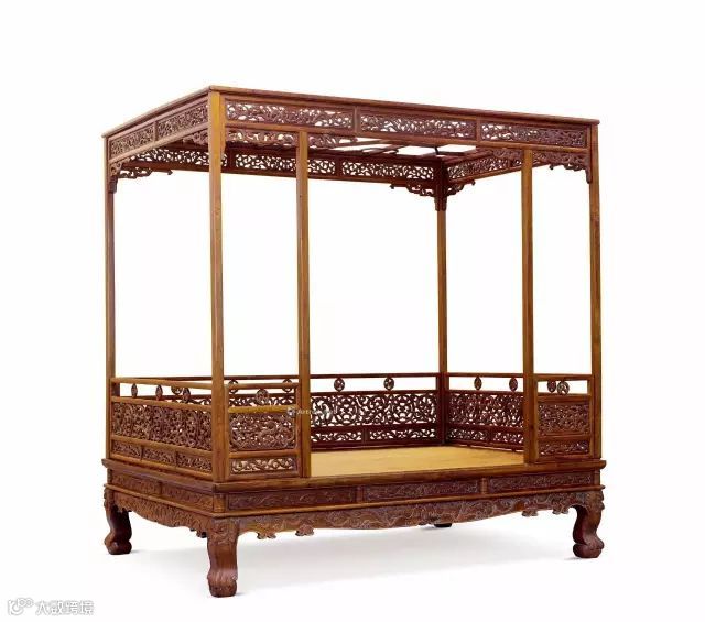 此床制作精细繁缛,觉其堂皇富丽、仪态雍容,却无过分雕饰、重复堆砌之感,堪称明式家具中"秾(nóng,花木繁盛)华"的典型范例。可见,尽管简练朴质是明代家具的主流,但高度装饰,豪贵华美却又典雅不俗的作品也同时存在。