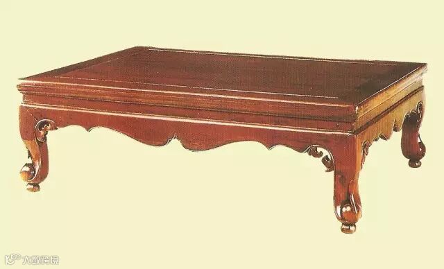 边抹颇厚,起拦水线。束腰较高,但四足上截不露明。牙条锼(sōu,用钢丝锯挖刻木头)出壶门轮廓,三弯腿。其不寻常处在于三弯腿的足端圆球又翻出花叶。每面壶门轮廓转弯处,锼出两叶,一在牙条,一在腿足,仿佛两卷相抵。但在腿足上的一卷确是一木连做,大大耗费了腿足的用料。正因如此,这一做法十分罕见。