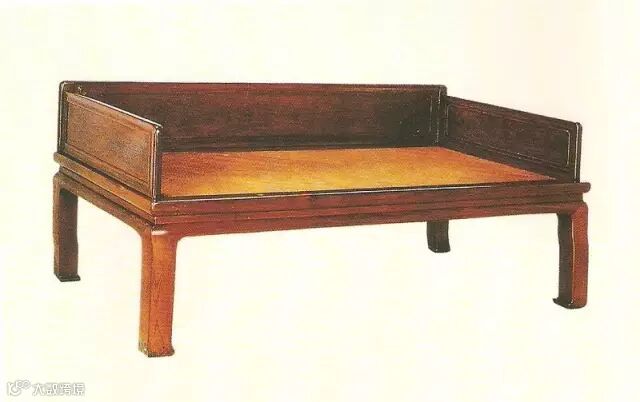床身有束腰,素直牙条,四足鼓腿彭牙,内翻马蹄。腿足大挖,弧度不大,此是受紫檀料本身所限。围子用料细致,玲珑疏透,但无损其典雅俊美。围子用攒接法做成曲尺式,这一图案早在北魏时的洞窟艺术中已经出现。