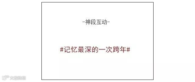 神段开始互动啦!!!2016年马上就过去了,31号就要跨年了,关于跨年你有什么值得记忆的故事吗,快来评论和我们分享哦~~~ps:昨天发起的互动最近会持续,看到好多小伙伴的跨年留言超级感动,我们会把大家的留言整理出来,快来分享么么哒~~~