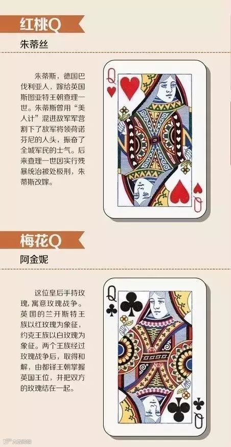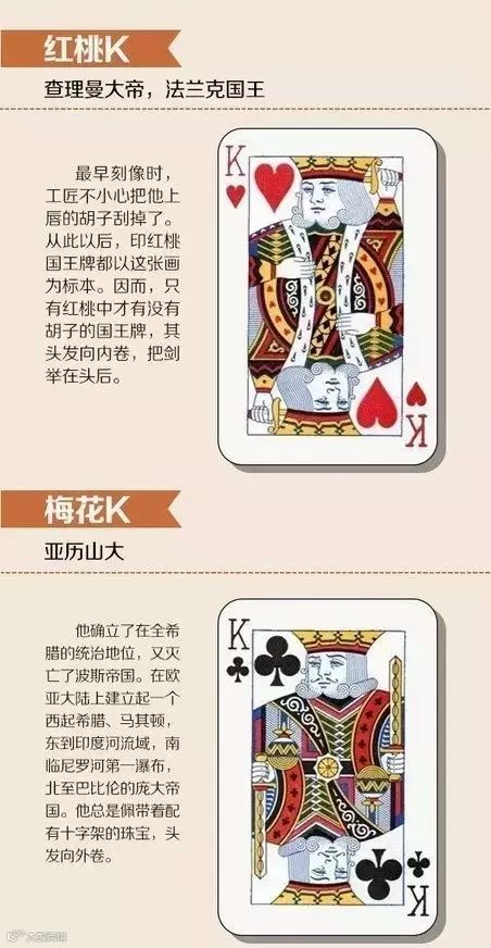 扑克牌中的K、Q、J共有12张,既表示一年有12个月,又表示太阳在一年中经过12个星座,还象征着欧洲中世纪的12位历史名人。下面我们就一起来看看这12张牌一一对应的历史人物吧!