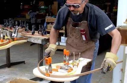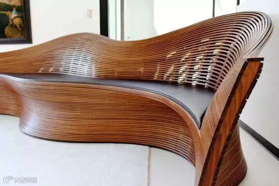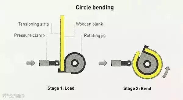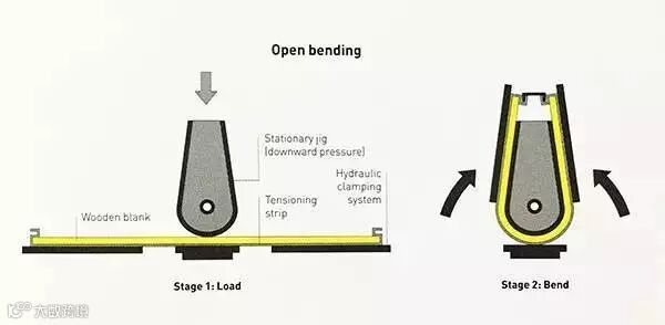 通过将蒸汽加热过的木材反复施压于模具,最后做到轮廓紧贴模具表面形成热弯曲度,适用于开放的曲线形体成型,例如座椅的靠背等