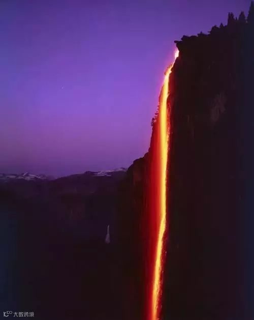 “火瀑布”从六百多米的悬崖之上奔流而下