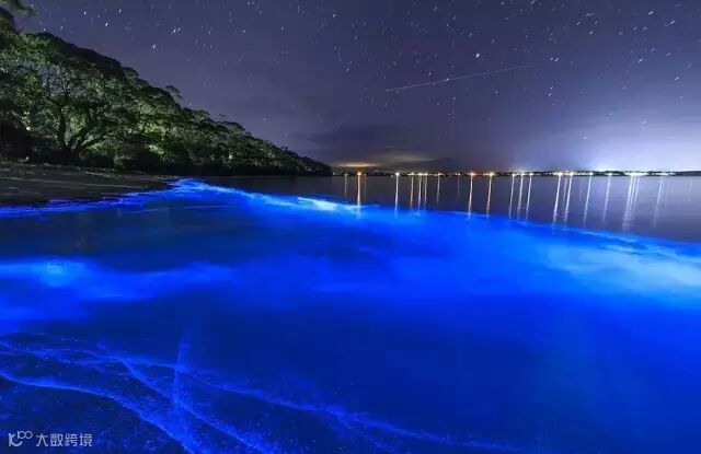 在澳洲南威尔士的杰维斯海湾有一片神奇的荧光之海,每当夜幕降临“夜光海藻”就会随着潮水飘上海岸,这里被称为世界上最美的海洋。