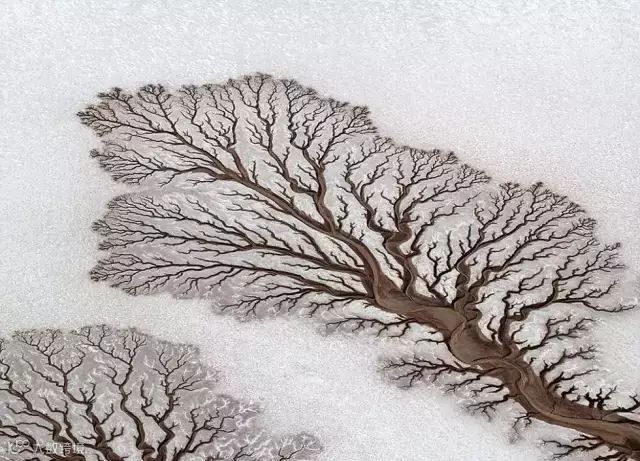 河流在白色的地表上流淌