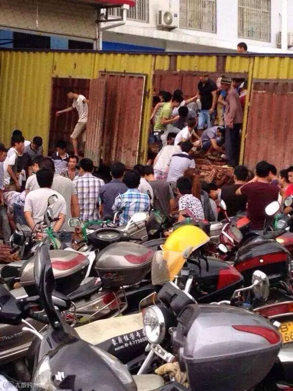 一组哄抢小叶紫檀原材料的照片让人震惊