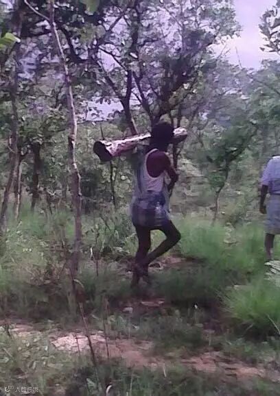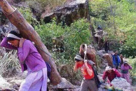尼泊尔的妇女、老人、小孩都参与紫檀木的搬运