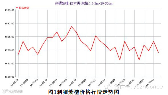 在“金九银十”旺季预期的提振下,9月红木市场成交有了较大改善,但由于高端材种复苏力度有限,红木分类指数走势也显得起伏不定。从鱼珠·中国木材价格指数网监测数据来看,目前红木分类指数重心有明显下移的趋向。今日红木分类指数报198.12点,日环比跌12.49%,跌幅5.93%。交易额较昨日增加81.93%。具体来看,尽管今日刺猬紫檀(俗称非洲黄花梨)和大果紫檀(俗称缅甸花梨)价格表现较为震荡,但市场成交量增幅却十分明显,其中大果紫檀日销量较昨日翻了两番,成为提振市场信心的最大功臣。商家透露,性价比优势明显是吸引下游厂家积极买入的关键因素。交趾黄檀(俗称大红酸枝)、奥氏黄檀(俗称缅甸酸枝)方面,今日虽然价格微幅上涨,但成交量却有37.5%、20%的下滑,市场走势不乐观。斯图崖豆木(俗称非洲小鸡翅)今日价格指数报104.42点,日环比跌0.48%,成交量环比下滑33.33%,成交价报4200元/吨,预计后市价格不会出现大幅波动以稳为主。