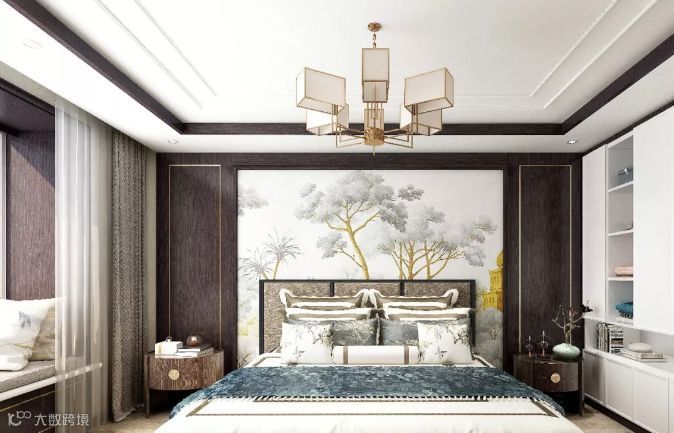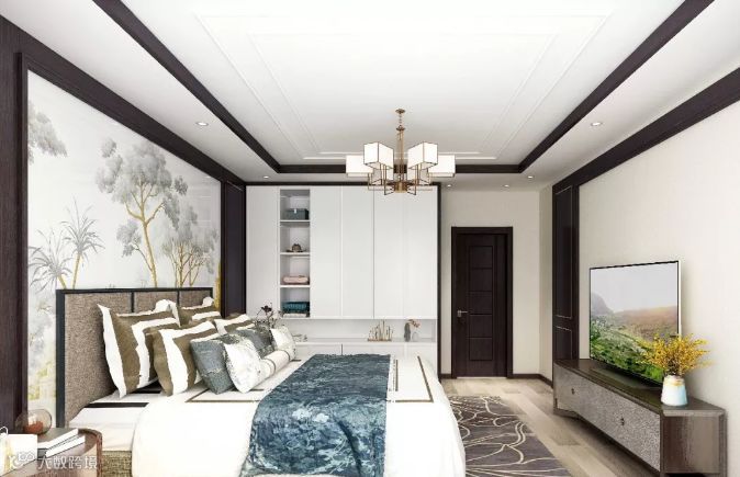 简中式轻奢风的搭配不在繁琐而在于搭配的协调性,卧室给人一种非常舒服的感觉,素雅中国风的背景墙装饰,灯饰、色彩、饰品的灵活运用,更加生动的表达出了传统文化的精髓。搭配现代感的床、衣柜,呈现出时尚优雅之感,简洁,现代,而不失韵味,更符合当代中国人的审美和生活需求,是理想的休憩之所。