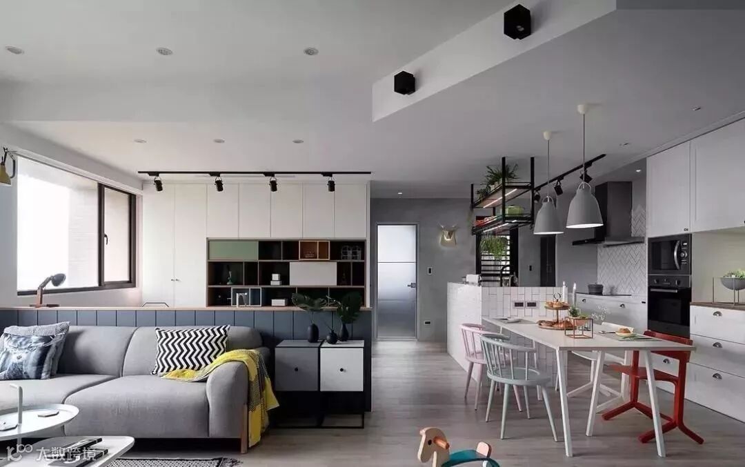 近年来, 客餐厅一体化、开放式厨房等设计越来越多。各种花样百出的开放式空间,依然会在2019年延续热度。更多人喜欢通透的开放空间,不仅有助于家人之间的互动,更增大了室内面积。
